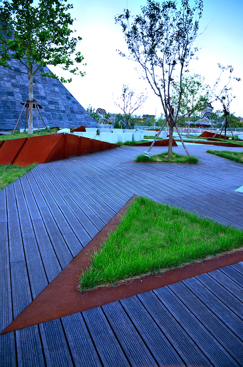 唐山熱帶植物館為2016年唐山世界園藝博覽會(huì)主展館,建筑面積1.3萬平方米,其中室內(nèi)展出面積是7000平方米,地上3層,高23m,總投資4.5億元。場館運(yùn)用桃花江戶外防腐竹地板,搭配清水混凝土與腐蝕鋼板等工業(yè)風(fēng)材質(zhì),通過簡潔、犀利的幾何線條切割手法有力的詮釋出唐山以煤為根,以鐵為命,堅(jiān)韌的意志與豐富的地貌的設(shè)計(jì)理念,整個(gè)建筑極具視覺沖擊力。