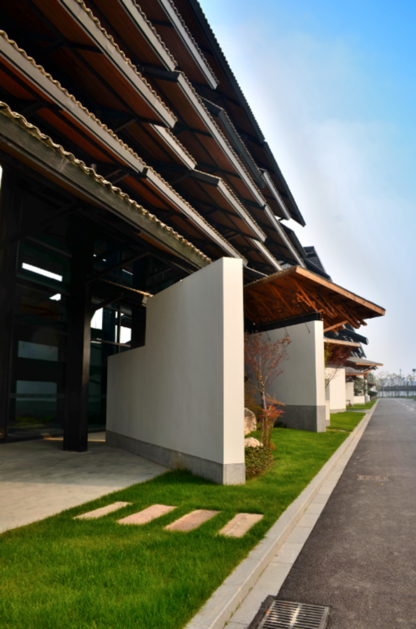 烏鎮(zhèn)互聯(lián)網(wǎng)國(guó)際會(huì)展中心位于烏鎮(zhèn)西柵景區(qū)西北部,建筑面積8.1萬(wàn)平方米,由「普利茲克建筑獎(jiǎng)」獲得者、中國(guó)美術(shù)學(xué)院建筑藝術(shù)學(xué)院院長(zhǎng)王澍設(shè)計(jì)。 該會(huì)展中心是世界互聯(lián)網(wǎng)大會(huì)的主場(chǎng)館,也是今后烏鎮(zhèn)景區(qū)承接會(huì)議、會(huì)展的主要場(chǎng)所。整個(gè)會(huì)址以水為媒,三座主要建筑沿南、東、北三個(gè)方向圍繞中心水池而建,池邊柱廊林立,廊內(nèi)漫步通行。整體建筑融入大量白墻黛瓦、臨水連廊等經(jīng)典江南水鄉(xiāng)特色元素,凸顯傳統(tǒng)文化與現(xiàn)代文明的融合共生。 會(huì)址外立面上,采用260萬(wàn)片江南小青瓦、5.1萬(wàn)根鋼索以網(wǎng)狀肌理寓意互聯(lián)網(wǎng),30萬(wàn)片桃花江戶外防腐竹材吊頂,整體呈現(xiàn)江南古老建筑與現(xiàn)代網(wǎng)絡(luò)相融共生的和美場(chǎng)景,也與整個(gè)烏鎮(zhèn)形成富有生機(jī)的時(shí)代對(duì)話。