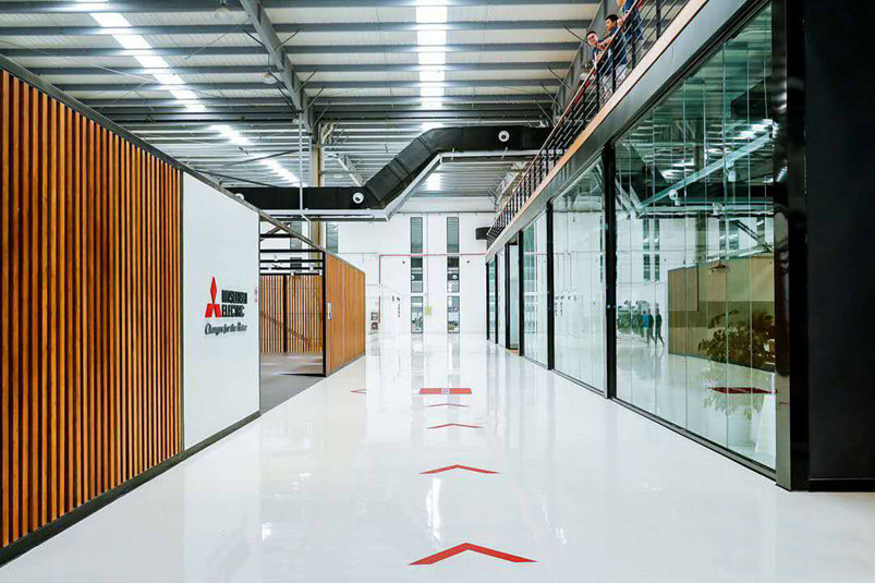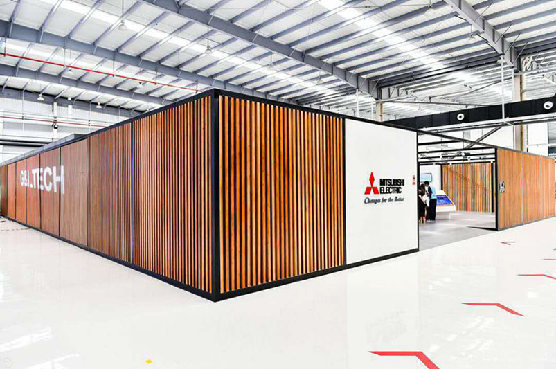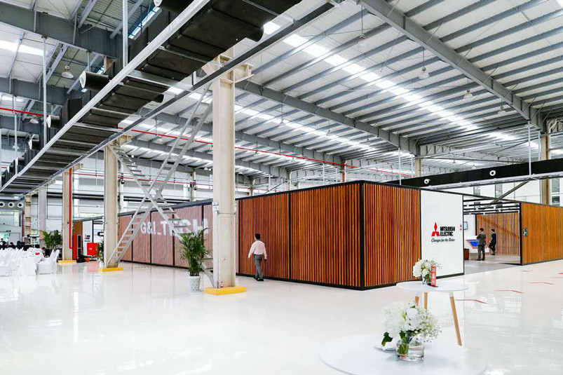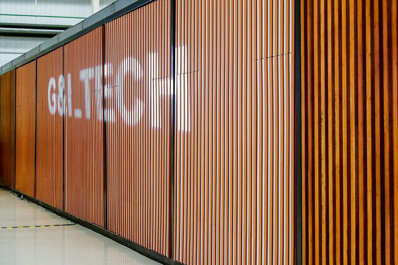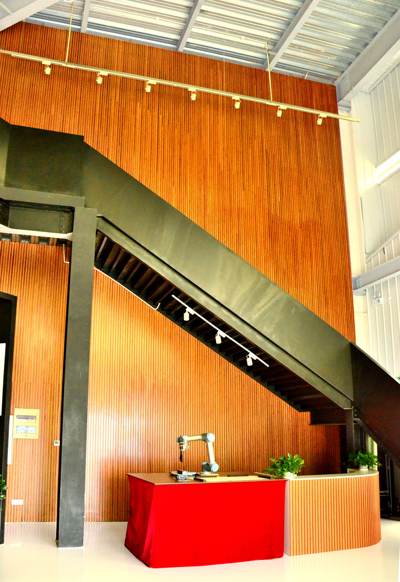菱創(chuàng)智能是一家集設(shè)計、研發(fā)、生產(chǎn)制造、銷售和服務(wù)為一體的創(chuàng)新驅(qū)動型企業(yè)。其辦公區(qū)的裝飾采用桃花江的室內(nèi)裝飾竹材。工業(yè)化的現(xiàn)代廠房與清新脫俗的傳統(tǒng)竹材形成強烈對比,為端莊嚴(yán)肅的工業(yè)廠房增添了一絲柔美與和諧。竹格柵的設(shè)計顯得整個空間通透又有層次感,既不失現(xiàn)代工業(yè)的科技感,又保留傳統(tǒng)文化的美感。