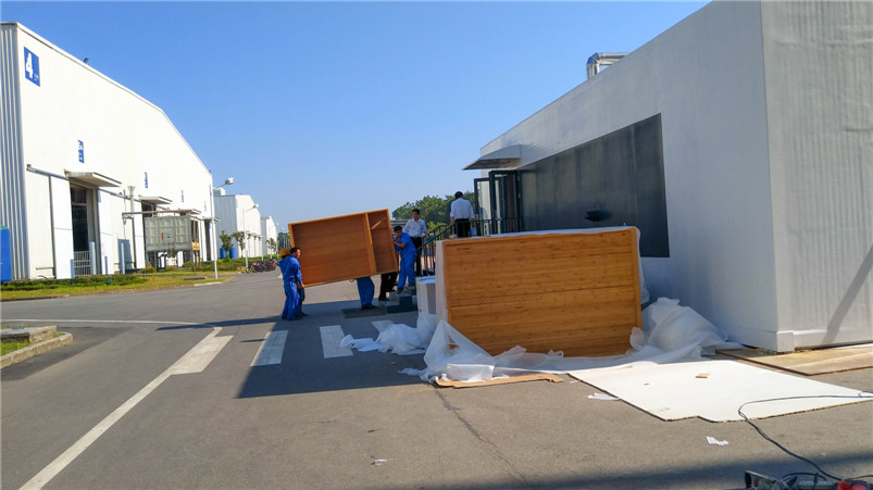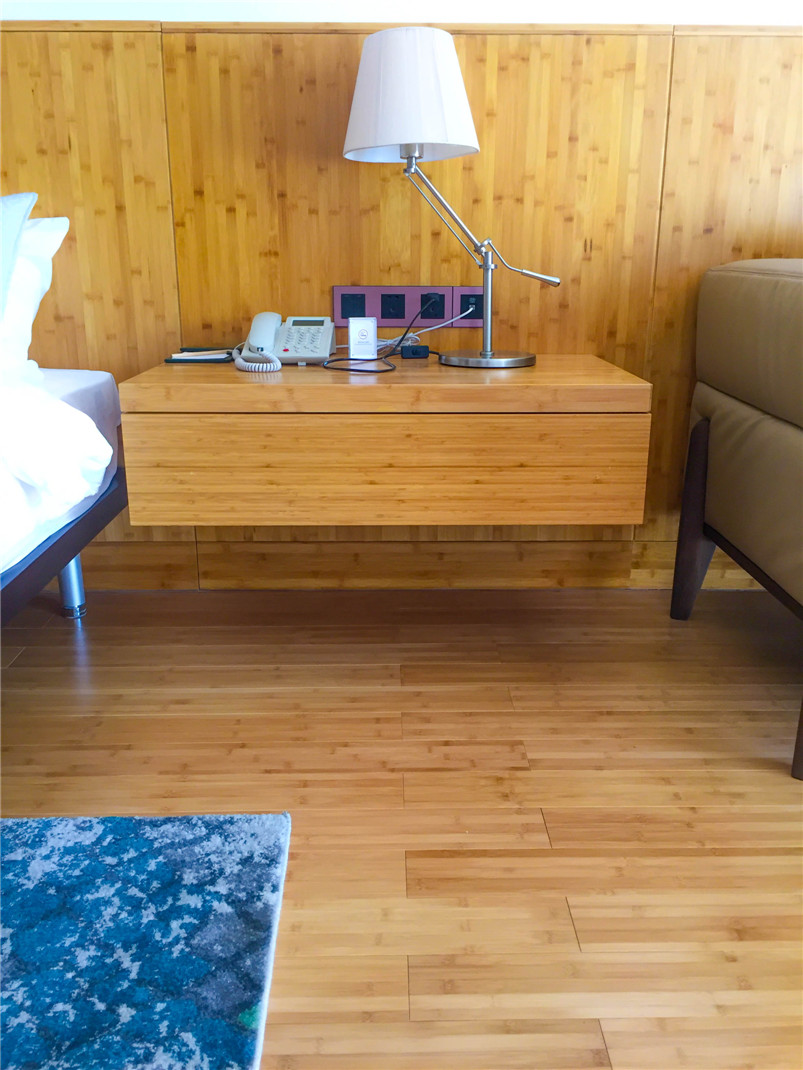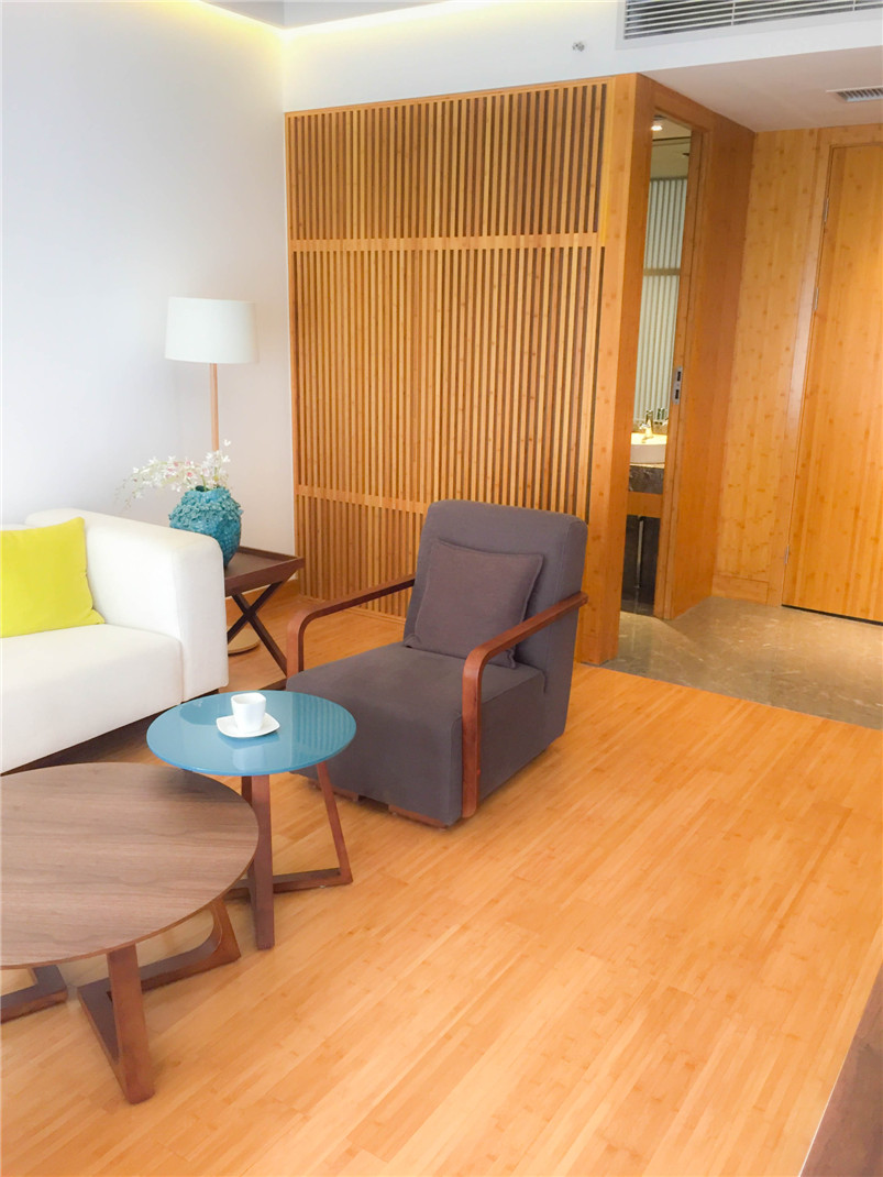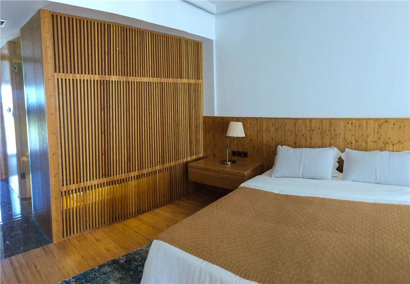 遠(yuǎn)大可建是遠(yuǎn)大科技集團(tuán)全資子公司,是全球持續(xù)建筑的先驅(qū)?;趯χ癫牡南矏酆蛯χ癫沫h(huán)保的高度認(rèn)可,遠(yuǎn)大總裁張劍親自參與此次與桃花江竹材科技在其塔式酒店產(chǎn)品竹整裝項(xiàng)目的洽談。在遠(yuǎn)大可建汨羅工廠,酒店竹整裝三套樣板間安裝施工已基本完成,內(nèi)部裝飾全部在桃花江竹材科技工廠加工后運(yùn)至在現(xiàn)場組裝,地面鋪設(shè)竹地板,整體效果簡潔、自然、溫馨。遠(yuǎn)大總裁張劍視察樣板間后對竹材裝飾效果十分滿意,表示將加大對可建酒店竹整裝項(xiàng)目的研發(fā)與推廣,加強(qiáng)與桃花江竹材科技的深度合作,期望未來全世界每三幢新建建筑就有一幢是可建。