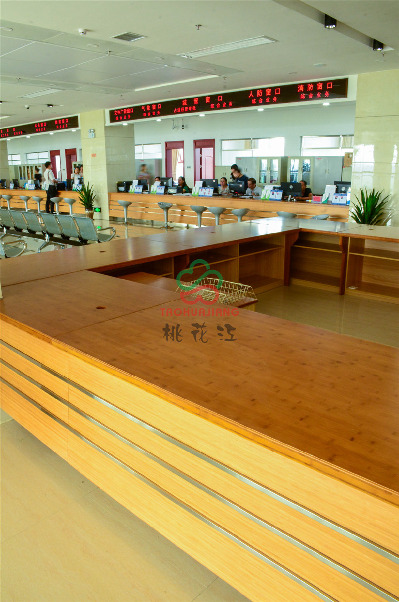 桃江縣政務(wù)服務(wù)中心是桃江縣委、縣政府為了優(yōu)化投資環(huán)境、提高辦事效率、更好地為廣大群眾和投資者服務(wù)而設(shè)立的正科級(jí)事業(yè)機(jī)構(gòu)。政務(wù)中心大廳內(nèi)的辦公桌全部使用桃花江竹材科技的普竹材料打造,色澤鮮明,質(zhì)地環(huán)保,整體感覺(jué)簡(jiǎn)約清新。竹材清正廉潔的高貴品質(zhì)正好與政務(wù)中心的宗旨:陽(yáng)光行政、勤廉公平、服務(wù)至上、便民利民相互呼應(yīng)。