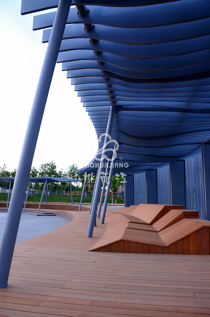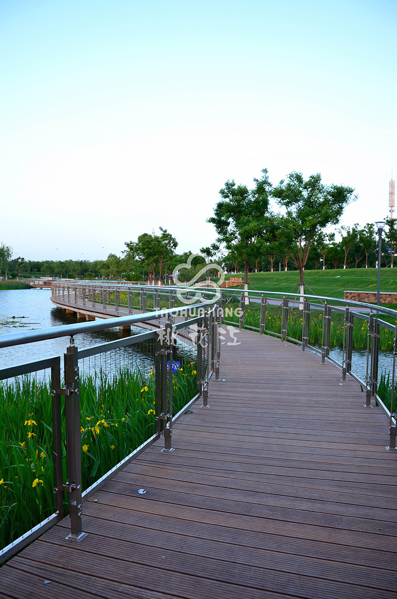 甘露溪公園位于天津?yàn)I海旅游區(qū)生態(tài)城中部片區(qū),總長(zhǎng)2.2千米,平均寬度200米,總面積約347560平米。公園的游覽步道、景觀平臺(tái)及部分運(yùn)動(dòng)場(chǎng)地運(yùn)用桃花江戶外防腐竹地板。公園的規(guī)劃設(shè)計(jì)是以生態(tài)自然為基底,休閑運(yùn)動(dòng)為核心,建立一體化景觀綠道和生態(tài)走廊,形成體現(xiàn)濱海旅游區(qū)國(guó)際化特色的濱水綠廊;無縫結(jié)合規(guī)劃城市肌理和兩岸景觀界面,打造生活、時(shí)尚、多樣化的濱水目的地,為周邊地塊提供運(yùn)動(dòng)、休閑的后花園。甘露溪公園的景觀設(shè)計(jì)獲得“艾景獎(jiǎng)”2015年度十佳景觀設(shè)計(jì)。
