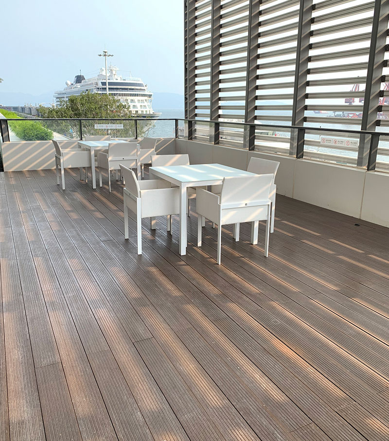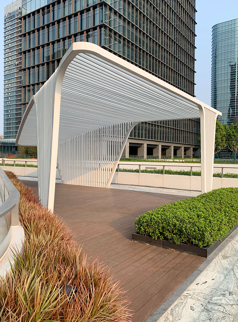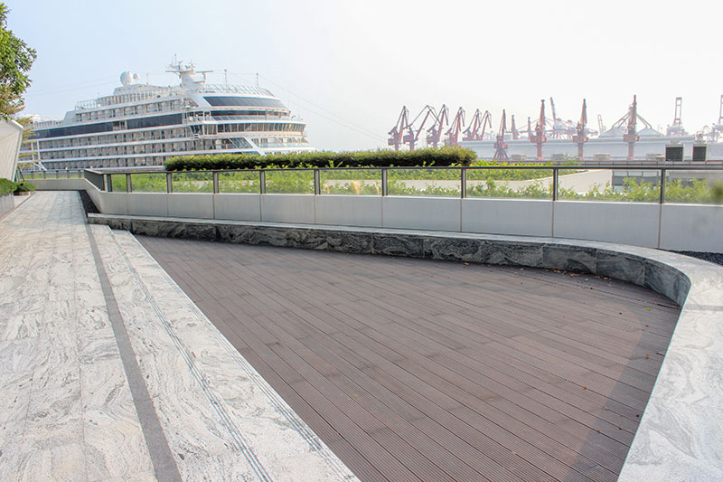 招商·深圳蛇口太子灣項目位于中國深圳蛇口自貿(mào)區(qū),立足深圳海上門戶——郵輪母港,占據(jù)深港中軸,擁有頂級的山海資源和海、陸、空、軌多方立體交通配套以及很好的市政、商業(yè)等配套資源。項目由頂級設(shè)計團隊—SED新西林景觀設(shè)計定制,以“山、林、海”為景觀設(shè)計主題,將前衛(wèi)的綠色設(shè)計、可持續(xù)發(fā)展思維帶到人們?nèi)粘<稗k公生活中,鼓勵人們多與大自然作出更緊密的對話。在室內(nèi)外的選材方面特別講究,既符合現(xiàn)代簡潔的設(shè)計風格,又能體現(xiàn)清新自然的藝術(shù)氛圍,給人舒服安適的居住體驗。 桃花江竹材的戶外竹材由合理采伐不破壞生態(tài)的竹子材料加工而成,加工過程不污染環(huán)境,廢棄后可自然降解,恰好契合了綠色環(huán)保、可持續(xù)發(fā)展理念,因此在項目中得到了很好的應用,如屋頂花園的竹木地板、竹木休閑座椅,觀景臺、親水平臺等,與周邊的場景融合,打造出宜居、宜業(yè)、宜商、宜游的國際濱海城區(qū)環(huán)境。照片拍攝于項目完工一年半后。