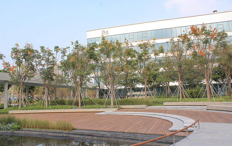 vivo全球總部項(xiàng)目位于東莞市長(zhǎng)安鎮(zhèn)新安社區(qū),由中國(guó)建筑設(shè)計(jì)研究院負(fù)責(zé)全部建筑設(shè)計(jì)和景觀設(shè)計(jì)。設(shè)計(jì)師設(shè)計(jì)了一系列清晰、簡(jiǎn)潔的幾何形體和空間,由一套連廊系統(tǒng)將它們有機(jī)連為一體,每一個(gè)空間獨(dú)特但不孤立,緊密地聯(lián)接于空間體系之中,充分考慮了便利性、舒適度、美觀和空間張力,塑造了豐富的室內(nèi)空間、露臺(tái)、庭院、廣場(chǎng)、公園……,容納工作、居住、游憩、交通于一體,承載著vivo人全天候的工作與生活。園區(qū)中大量采用了桃花江的戶(hù)外竹材,涼亭、廣場(chǎng)地板、護(hù)欄扶手和休息座椅等區(qū)域都有分布,承載著職工們的交流、休閑、運(yùn)動(dòng)、Party和沙龍等功能,使他們工作更高效,生活更健康。