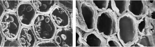 左圖是未經(jīng)處理的竹子分子結(jié)構(gòu),右圖是經(jīng)過(guò)處理之后的竹子分子結(jié)構(gòu)。
