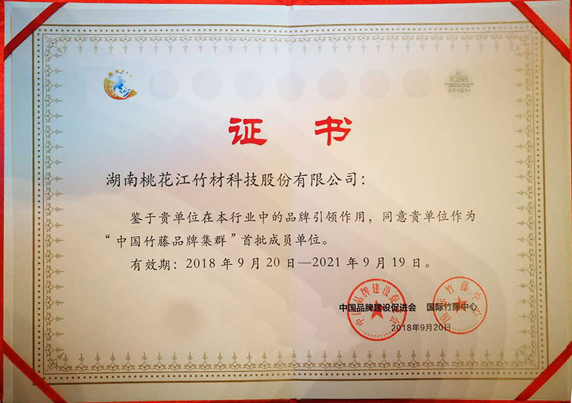 9月20日,“首屆中國(guó)集群品牌論壇”在京成功舉行。本次論壇發(fā)布的37個(gè)中國(guó)竹藤品牌中桃花江竹材科技位列其中,桃花江品牌成功入選“中國(guó)竹藤品牌集群”。