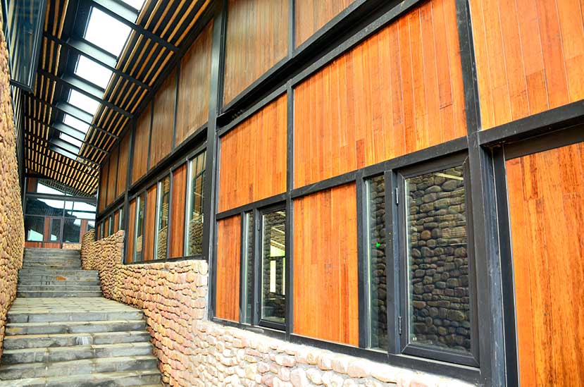 在園林景觀中,竹材常常用來(lái)滿足各種實(shí)際需求,如竹籬圍擋、戶外竹地板、竹扶手欄桿、竹樓梯踏步等等。對(duì)于建筑竹材的應(yīng)用前景,不少建筑、景觀設(shè)計(jì)師都表示非常樂(lè)觀。很多人指出,刮去竹青的竹子表面呈黃黃的顏色,讓人感覺(jué)很溫暖。以竹材做墻面裝飾,效果一點(diǎn)兒不比傳統(tǒng)的木飾面差。就材質(zhì)自身的穩(wěn)定性而言,竹材也比木材強(qiáng)。專業(yè)的室外竹質(zhì)鋪裝材料除了能夠保留竹子本身的表面肌理效果外,其嚴(yán)格的防腐加工工序也令竹材的性能更為穩(wěn)定,能有效延長(zhǎng)戶外地板的使用壽命,整體效果更好。